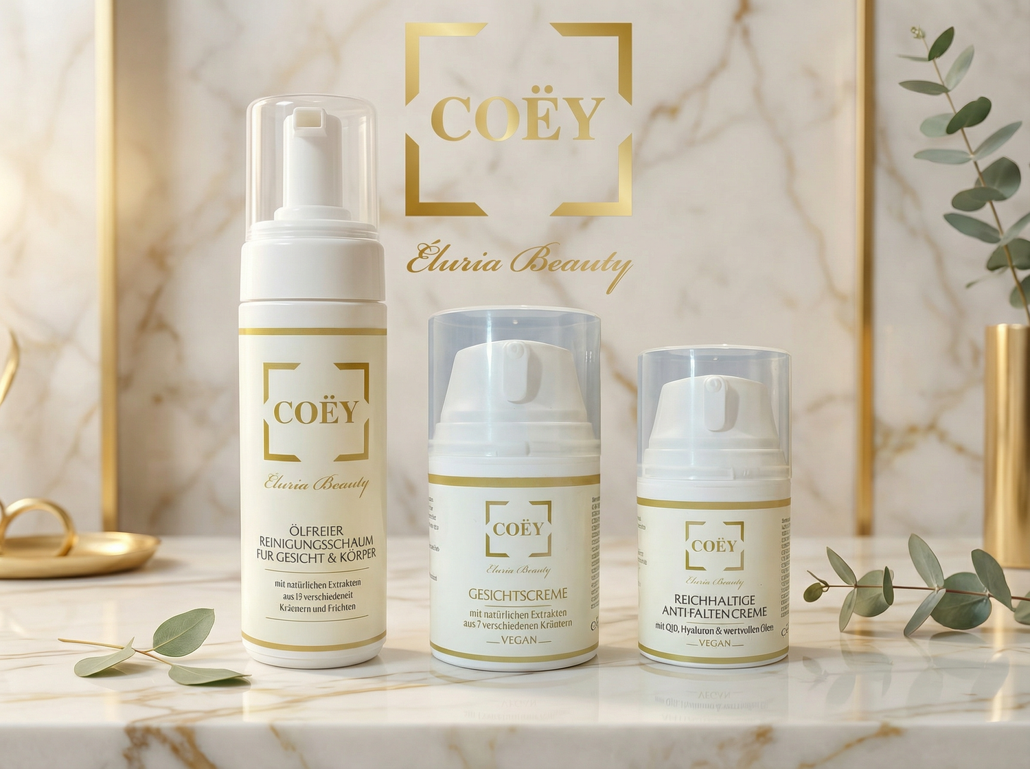 Auf Basis meiner langjährigen Erfahrung habe ich COËY Eluria Beauty als passende Pflegelinie ausgewählt, die beruhigt, stärkt und deiner Haut genau das gibt, was sie wirklich braucht.Ohne komplizierte Routinen und ohne irritierende Wirkstoffe.